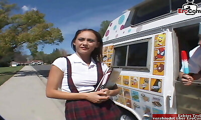 Banging in the backseat is what super-steamy brunette teen Angel loves