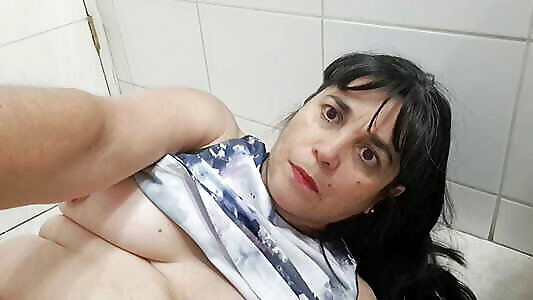 mature aux gros seins baisée dans la salle de bain par un mec rasé