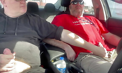 Jacking our Cocks In car in a parking lot