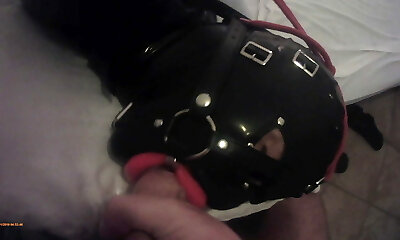 clear penis gag then latex hood for condom slave brandy