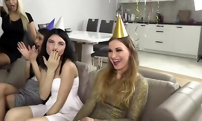 Bunch of kinky ladies enjoy having naughty lesbian fun during a birthday