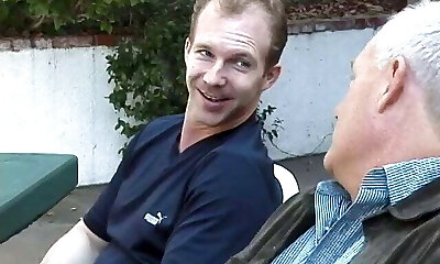 Skiley Jam gives an older fellow a nice massage and rides his dick