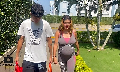 I help my pregnant neighbor as a pretext to pound her hard and toss my cum on her big tits.