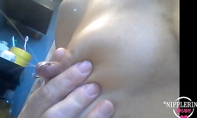 nippleringlover horny pregnant cougar milky titties pierced nipples squirting lots of milk on mirror