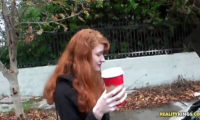 Hot ginger-haired teen get facial after blowjob and hard pounding