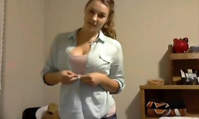 Teen In Jeans Does Sexy Solo Striptease Video
