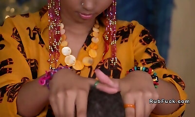 Ebony milf gets pussy spread and bitten then swallows BWC piss