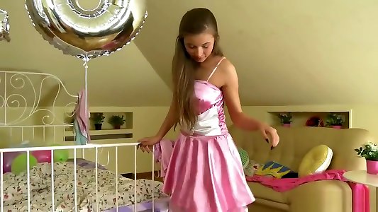 Blonde tight pussy babe solo toy fun in glamour masturbation
