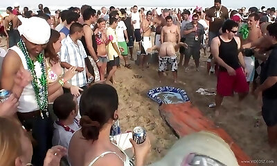 Drunk Party Girls in Luxurious Bikinis at the Beach