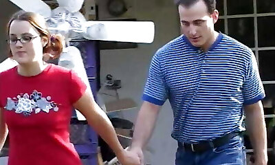 Slightly Eighteen slut in specs blows pop's big stiff spunk-pump then gets cum in pink pussy