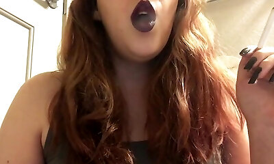 Sexy Lush Goth Teen Smoking Red Cork Peak 100 Cigarette in Purple Lipstick