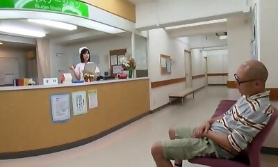 Japanese Dark Haired nurse Shino Aoi in the doctor's office in oral action uncensored.